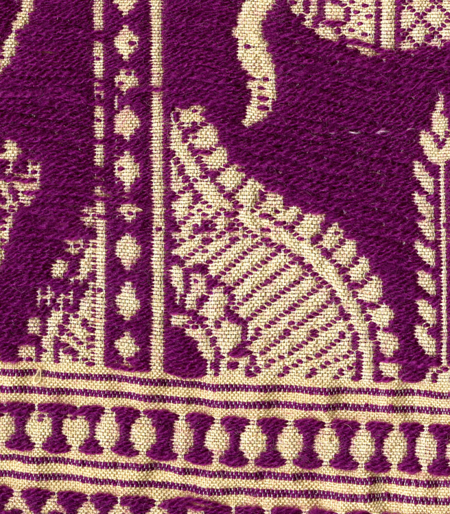 Tasar culture is important to many of the Tribals in eastern India, primarily in the states of Bihar, Chhattisgarh, Odisha (formerly Orissa), Andhra Pradesh, West Bengal, and eastern Madhya Pradesh (CSB 2006, Trivedi et al. 2009). Cocoons are collected in the field. However, eggs are often placed onto trees near villages and larvae are moved from one small tree to another if they defoliate the first, so a certain amount of husbandry is done for what is otherwise a wild silkworm. There are numerous so-called eco-races that produce huge cocoons varying from brown to gray to dull yellow, and most of these eco-races are restricted to certain regions and feed on certain kinds of trees (Kavane & Sathe 2011). The silk is reeled to make saris, scarves, wrappers, and it is spun to make heavier scarves and shawls. Tasar silk has a special cultural significance to all segments of Indian society, and tasar kurtas are often worn by grooms and tasar saris by brides at their wedding ceremonies. The undyed natural brown or beige is generally favored for traditional textiles and garments. Many of the famous ikats from Odisha and embroidered and brocaded wrappers from West Bengal and other eastern states are made of tropical tasar silk. The popular Baluchari stoles from West Bengal, one of which we illustrate here, are brocaded with repeating patterns of traditional motifs. Because tropical tasar silk has been over-exploited in India, a lot of Chinese tussah is now imported to serve as a substitute on the handlooms (Srivastav & Thangavelu 2005). Spun or reeled fabrics of mulberry silk are also often dyed a light brown to look like tasar. Most textiles from India are weft dominant.