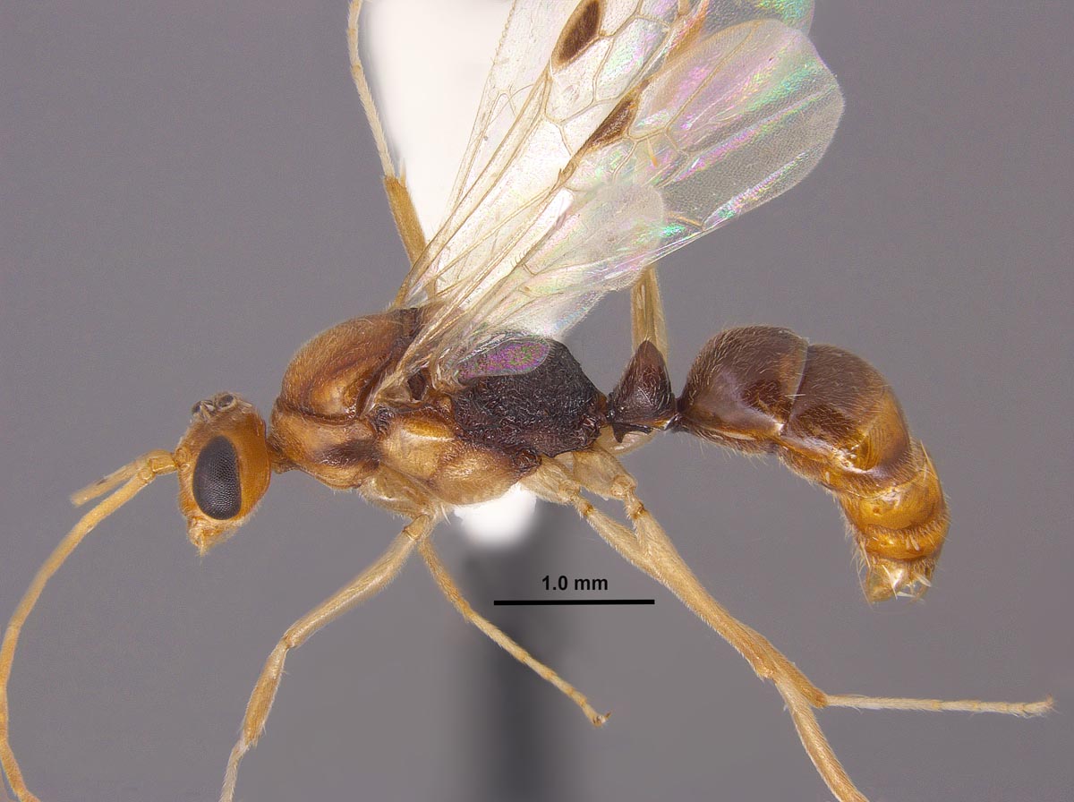 | Head and thorax yellowish with some brownish infuscation, propodeum dark brown, petiole and gaster brownish, and appendages yellowish (southern FL) | |||
