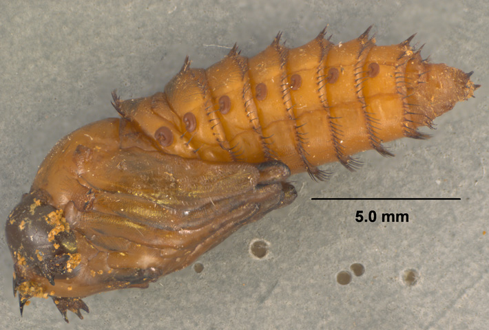 Profile view of robber fly pupa collected in nest of Formica pallidefulva.