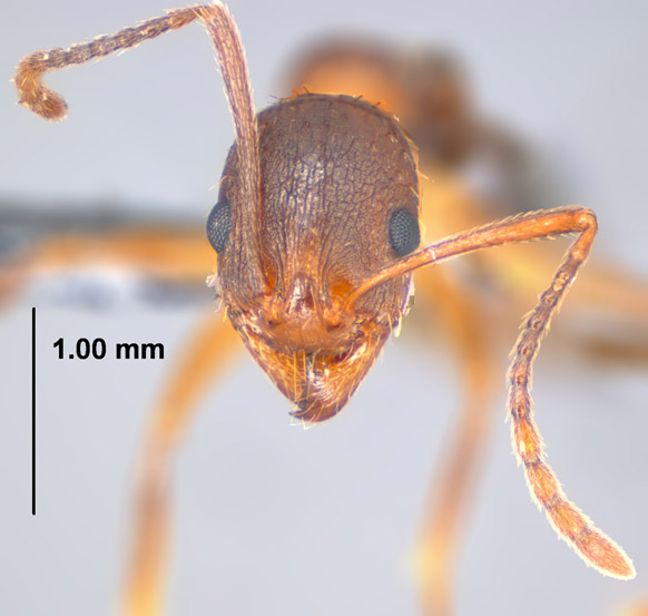Aphaenogaster miamiana, full face view of worker (click image to enlarge). |