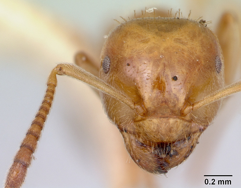Lasius plumopilosus, full face view of a worker (click image to enlarge). |