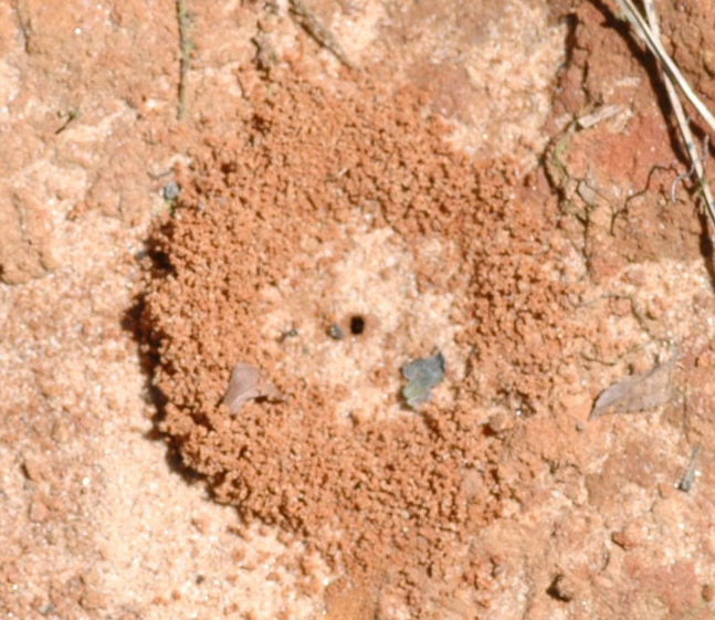 Monomorium minimum, crater surrounding entrance hole.