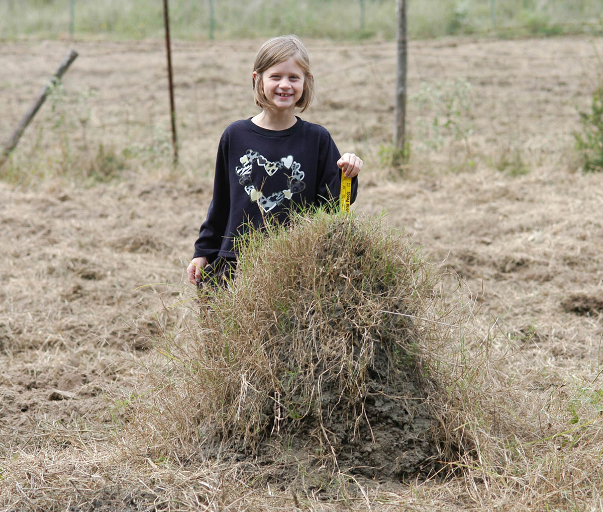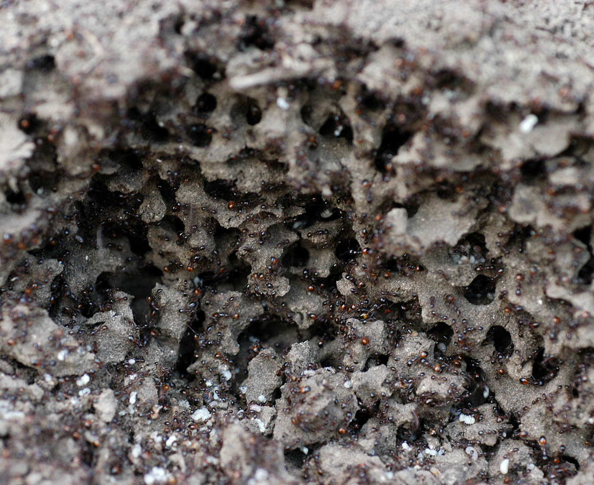Imported hybrid fire ant mound, closeup view of galleries (photo by Blake Layton) |