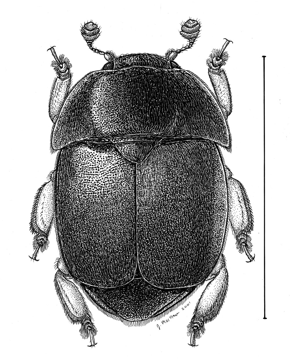 Aethina tumida Murray, dorsal view of adult. Scale bar equals